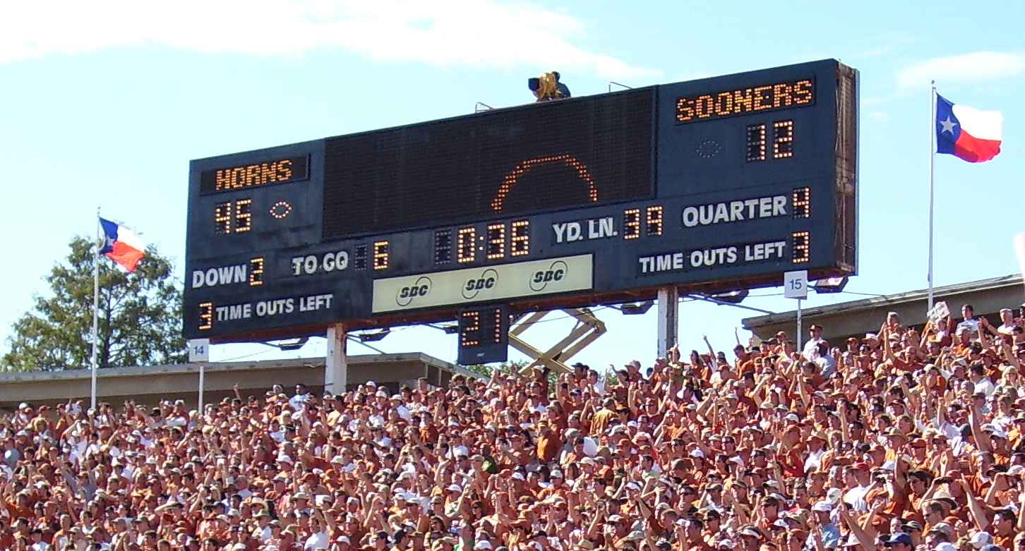 | 17th Sept, 6pm CST | Rice | Sun 18th Sept 2pm Bodeans Soho | Texas 51, Rice 10 - Jamaal Charles makes a big statement - 189yds, 3TDs. He would have smashed Benson's freshman rushing record if we had left him in. |